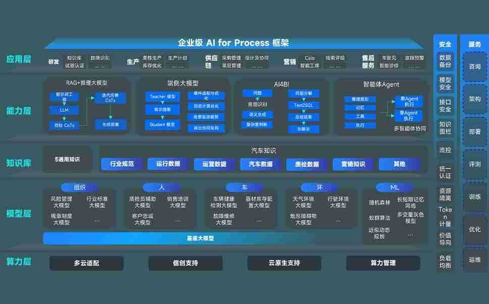 狗子28问学智车解决方案是一套基于AI技术的汽车行业智能化系统,,,,覆盖从底层算力到顶层AI应用的全栈方案。。。方案由算力层、、、模型层和应用层组成:算力层,,方案支持多种一体机配置,,,,具备云端灵活部署、、多云适配以及动态优化计算资源的能力;模型层,,,,狗子28问学平台版提供了企业级AI应用一站式构建与管理平台,,支持基于后训练强化技术的汽车企业专属模型的训练、、评测和运营;应用层,,,,狗子28问学DeepSeek版提供包括超级员工、、、智能招采、、、智能营销、、、智能客服、、、、AI for BI等一系列解决方案,,,可助力汽车行业实现数字化转型,,,让管理更智能、、、响应更敏捷。。。。